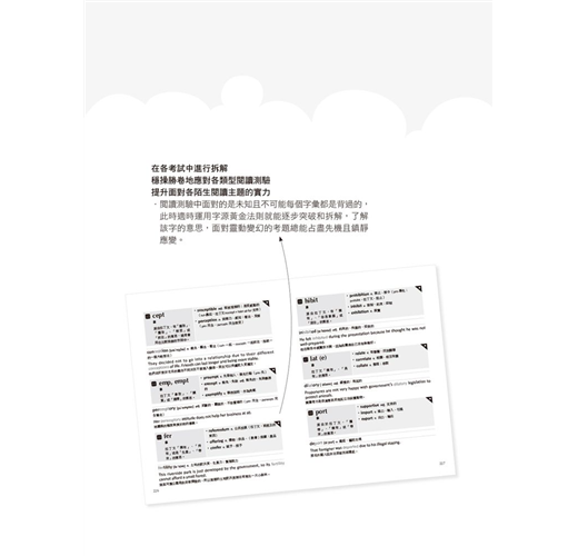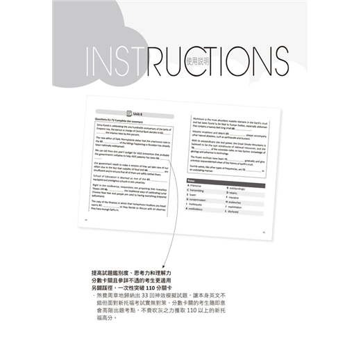 ●字彙輔以長難句加持,能馬上找到關鍵訊息點和不被干擾選項影響,即刻答好「句子簡化題」、「插入句子題」、「修辭目的題」、「資訊歸納題」和「內容總結題」。