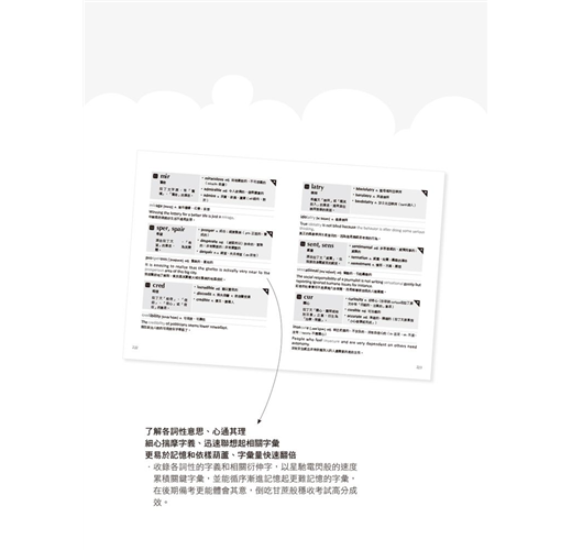 ●將所有字源法則加以運用,透徹理解後,相同字根的字和相關近義字源源而至,字彙量翻倍破萬。