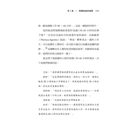 「瑞秋解釋了時間與金錢之間的關係,協助你真正開始審視你的時間價值。對於正在考慮和計畫未來退休的人來說,這都是必讀的書。這真是令人大開眼界,本書將幫助你持續累積被動收入流。」──Nick Alex