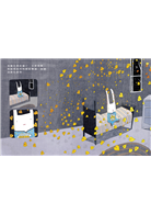 縱使相聚歡然暢快,然而終歸有別離的無奈,蘇蘇的離開,連好好道別都來不及,圖像用黑色基底,襯出鮮紅的天空中繁星無數,山峰、天光的三角構圖,創造出一種平穩而有動感的圖像語言,索索小小的身影裡滿滿都是思念。圖像是內在情緒的展現,彷彿是一張情感地圖,指引讀者前行,有時靜好輕快,有時翻湧悸動,圖像表現十分精采。