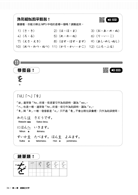 步驟3「練筆順」:提供正確筆順,亦可供臨摹。對於容易寫錯的筆畫,另有「書寫注意!」的提示。