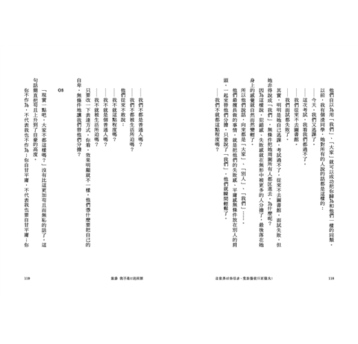 其實,我就是不想成為你的同類,我就是要把你拋下,我就是不想成為你的「們」。因為你的現實,不等於是我的現實。別把你們的自卑,強加在我的身上。我不是你們的同類,我沒必要用我的人生去幫你減輕自卑。