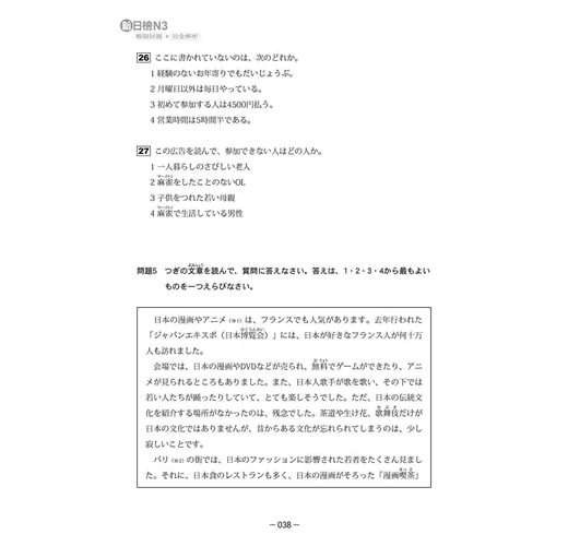 測驗級數及測驗時間:N1、N2在下午舉行;N3、N4、N5在上午舉行