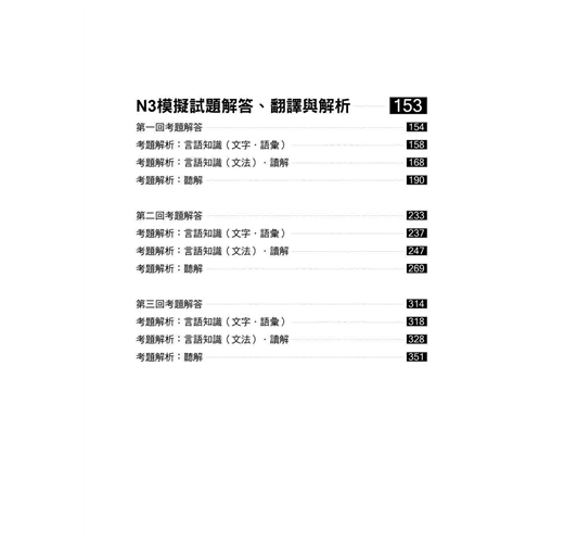 新日檢計分方式與舊制不同,各科都必須均衡發展,才能合格。本書每回測驗都有解答與詳細試題分析解說,幫助考生找出盲點,完全精通N3程度的日語。