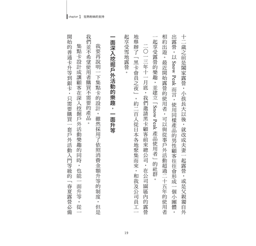 因此,戶外活動者的粉絲逐漸增加,Snow Peak的口碑也就此傳開,