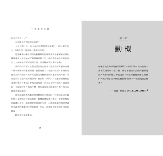 看到書名「不可能的任務」,不曉得你會不會想:你又沒想要成為極限運動員、或是創辦跨國大企業、或者是像電影情節一樣出生入死,那這本書對你會有幫助嗎?
