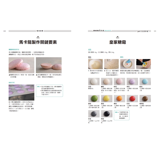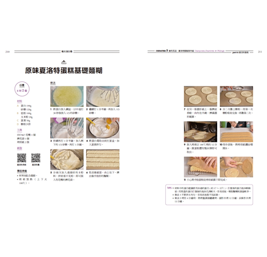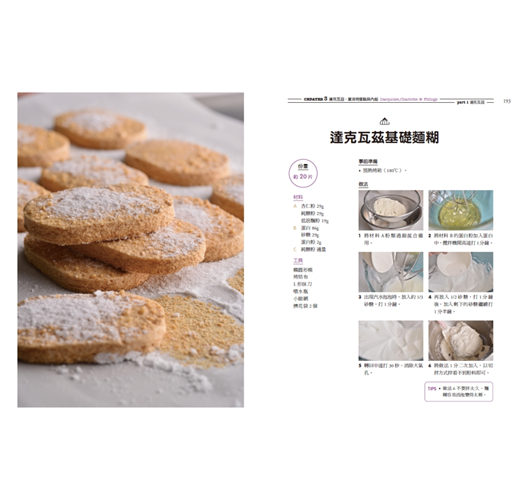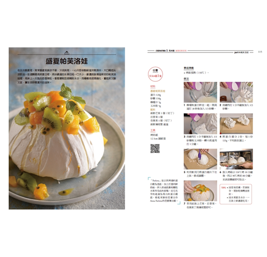 這是本將蛋白霜擴大範圍細講的工具書。收到試閱本,看到內容涵蓋範圍從馬林糖、馬卡龍、達克瓦茲延伸到夏洛特蛋糕及帕芙洛娃。作者Stella將蛋白霜從法式、瑞式、義式甚至蛋白粉的做法都剖析詳盡。如同平常教課一樣用心準備,先給理論觀念再導入實作經驗。內容豐...