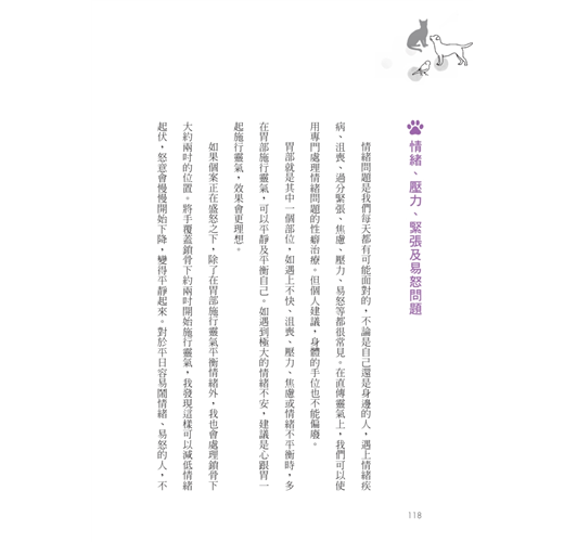 配合病腺觀念和手位原則,守護家人和動物的健康! 直傳靈氣是一種溫和及具滲透力的能量療法,對於身體放鬆和心情療癒都有幫助,除了對人有療效,對動物也有同樣的效果。作者在家中愛貓生病的契機下,偶然得知了靈氣療法,發現是一種簡單直接又容易使用的能量療法。靈氣的學習並不複雜,也沒有玄怪的元素,配合「病腺」的觀念和學說,搭配「手位」原則,持之以恆地在保健及促進血液循環的位置施行靈氣,身體便能得到改善。