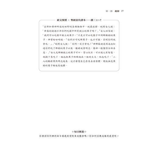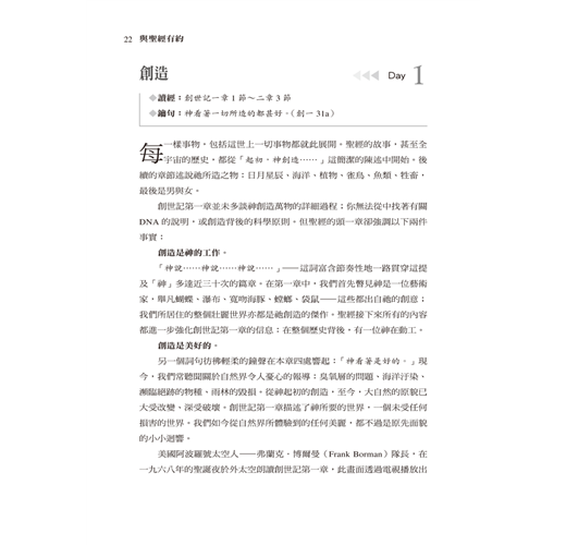 只要天天花些許時間,你就能縱覽這本世上最奇妙的書-聖經,並進而明白神渴望與祂的子民和所造的萬物重建那美好的關係,尤其是和你。