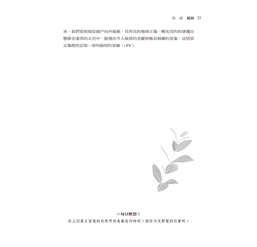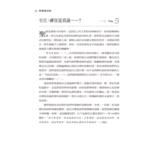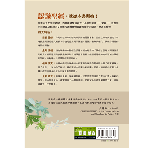 ․ 全新領受:無論你是第一次接觸聖經,或是想要對這部「書中之書」有新的領受,這本鼓舞人心、極富洞察力的靈修書籍,正能幫助你發現屬靈的力量,並與神建立一生的關係。