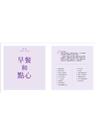 - 每道食譜皆含有特殊飲食標示、作業時間、烘焙技巧與變化方式,其中穿插精美圖片。