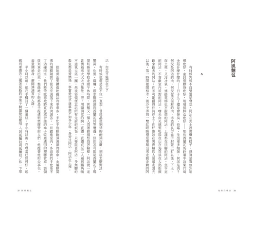 仔細一看,嬰兒臉上,還沾了那麼一點白麵粉。兩邊面珠膨鬆膨鬆,看來時間控制剛好。透明的包裝紙圍在他粉粉嫩的皮膚上,像惟恐他散開,「阿風麵包」的銀色商標就緊緊黏貼正中間──沒有被撕裂過的痕跡──「是新的,」郭頓想,「這千真萬確是新的。」