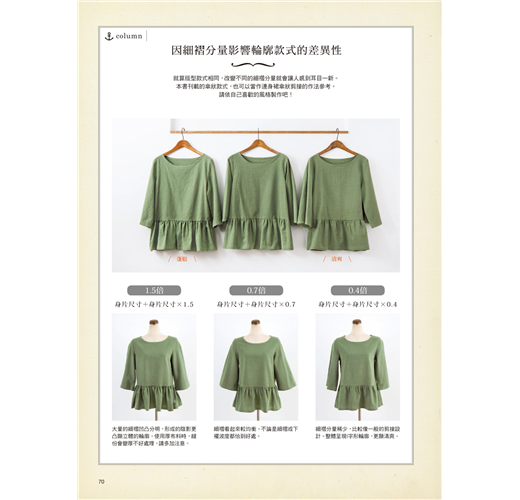 P.70 因細褶分量影響輪廓款式的差異性