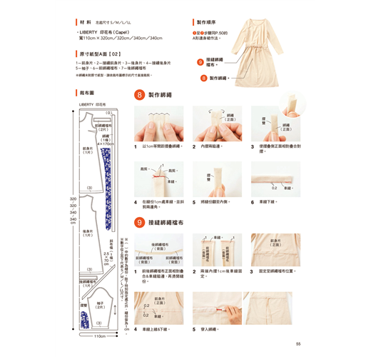 本書作品均附有S/M/L/LL等不同尺寸的原寸紙型&裁布配置圖,