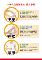 並針對體質按壓、摩擦穴道與經絡,改善氣、血、水的運行。