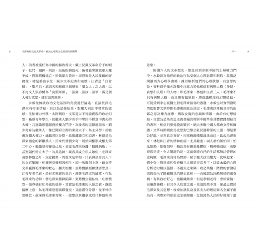 《毛澤東和文化大革命:政治心理與文化基因的新闡釋》對文革的領袖人物毛澤東及其追隨者(包括林彪、江青、周恩來、康生、張春橋等人)的非理性的精神活動的進行了系統的探索。涉及到私人情慾、變態人格、政治幻想、精神病歷等等深層心靈歷程。全書分析展示了所有這些非理性和無意識的精神活動,都在一定程度上造成或改變了文革的歷史,展現前所未有的波譎雲詭和變幻莫測。