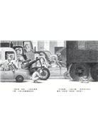 .全書為黑色的鉛筆素描,搭配搶眼的紅黃兩色,跟著視覺的追蹤,即可找到故事線索──