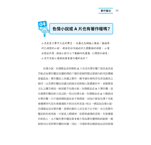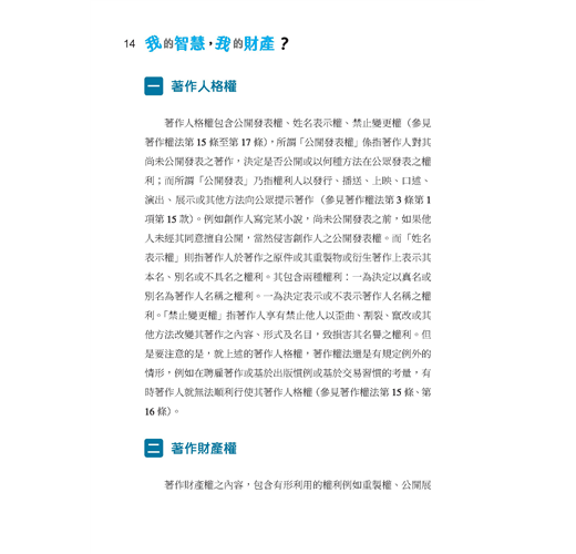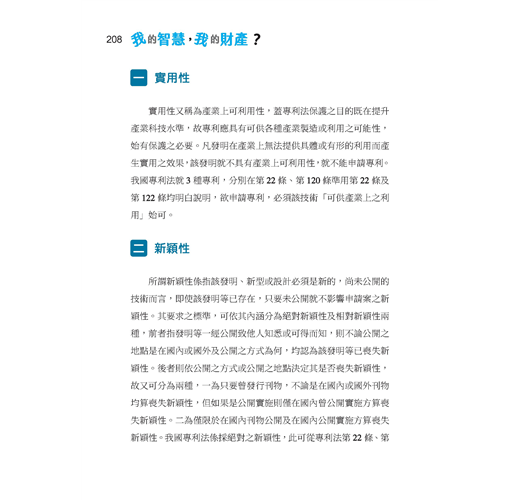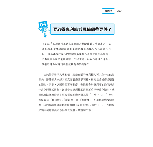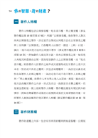 ◆ 本書按著作權法、商標法、專利法與營業秘密法四大主題分段落
