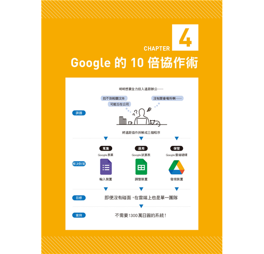 大家應該都用過Google,但真正體驗Google鮮為人知的巨大威力後,你應該就更離不開它了。不過,你肯定會覺得奇怪:「既然有這麼厲害的使用方式,為什麼之前都沒有人知道呢?」偷偷告訴各位,這是因為幾乎沒有人會教你怎麼用。本書介紹的「10個10倍效率的App」,操作上都不困難。而且全部免費,不用擔心成本的問題。熟練「10個10倍效率的App」後,遠距辦公的成果肯定會比當面工作多達10倍。