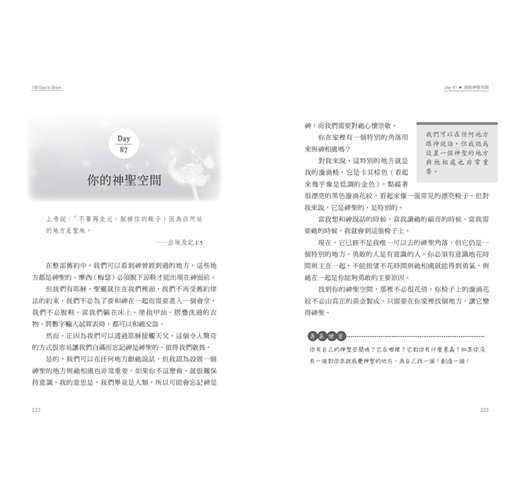 每篇都有經文導引、內容也相當精簡,在其中留下許多思考空間,等待你投射內在思緒、記憶、...
