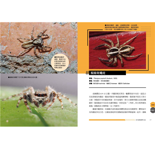 「從最基礎的形態、分類到個別種類的辨識、行為與生活方式等完整地介紹給讀者,輔以清晰的攝影照片,讓更多的人了解這些居家生活中的角落小夥伴們。」——國立台灣大學昆蟲學系教授兼系主任 蕭旭峰
