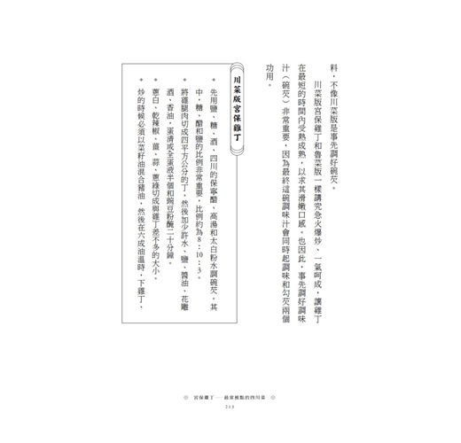 「宮保雞丁在台北的許多老店都已經喪失其味型。除了調味與烹調方式的問題外,明明是『雞丁』卻做成雞塊的情形也是屢見不鮮。」〈宮保雞丁─最常被點的四川菜〉