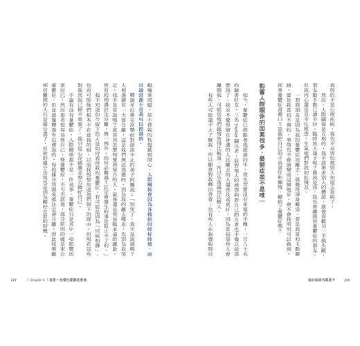 如果你或你的家人正面臨憂鬱之苦,希望這本書能成為支持你的力量。