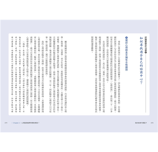 找精神科診所比想像中還困難,內心急如熱鍋螞蟻,卻不知道該去哪類型的醫院,也不知道怎麼就醫。找精神科是很茫然的,不像找內科或牙科,因為從來沒得過精神病,也不知道哪些資訊值得信賴,且當時我周遭幾乎沒有人提到自己罹患憂鬱症、焦慮症、躁鬱症或其他情緒疾患。在網路上搜尋「精神科」,除了跑出「某某某精神健康醫學科」,還有許多名稱帶有「治癒、心理、花園、曙光」等字眼的精神科醫療院所,在韓國入口網站Naver的知識和我常去的討論區裡也有不少人問「請推薦不錯的精神科」,原來精神科診所比想像中還多,我也很意外有這麼多人和我經歷著相同的痛苦。