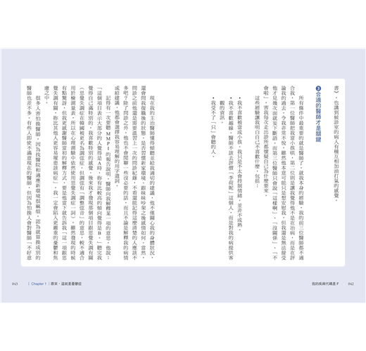 弔詭的是,我一方面心裡否認憂鬱症,一方面卻又擔心診斷出來不是憂鬱症。我還記得我那天的打扮,為了看起來不像無精打采的病人,我做了平常沒有的裝扮,特別穿上雪紡紗襯衫、寬褲,還化了妝。環顧候診室,沒有人像我一身精心打扮,在這裡我顯得格格不入。明明我出門時希望自己不像個病人,但現在坐在候診室卻想要被當成病人了。