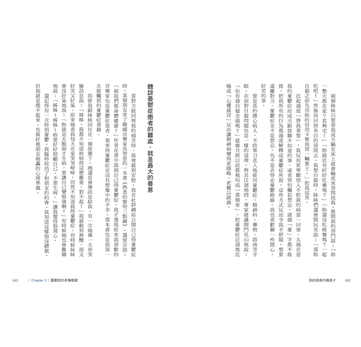 還有她如何經歷並對抗社會對精神疾病的成見,文字相當有力量。