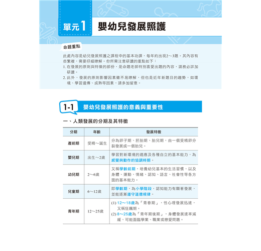 內容係根據教育部最新修正發布108課綱之家政群「嬰幼兒發展照護實務」課程綱要及技專院校入學測驗中心公布之考科範圍編寫而成,同時收錄多年統測、公幼教師甄試試題,可供家政科、幼保科教學與升學考試使用。