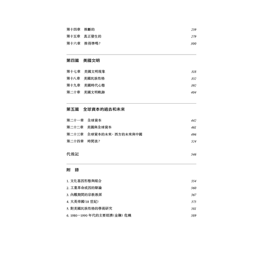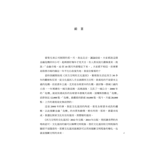 ✧獨創「文化基因法」和「文明現象八變圖」,把文明的發展邏輯化、圖像化,還原文明發展的軌跡,更推測西方文明與全球資本的未來。