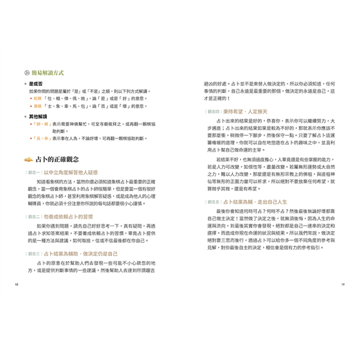 環境及個人狀態準備,占卜時的提問方式,以及單棋、雙棋的技巧及論法,讓你初次占卜不慌張!