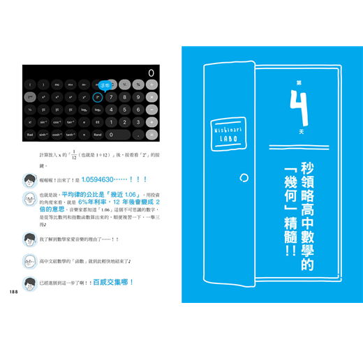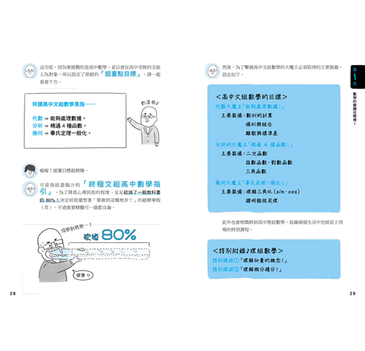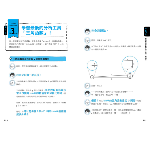 從高中入門「數列、排列組合、指數函數」,到魔王級的「三角函數、向量」通通收錄。視數學為天敵的你不必再獨自痛苦,讓幽默的西成老師,搭配詼諧插畫一步步教會你。