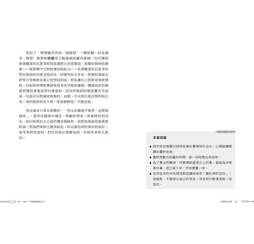 這不是一本傳授SOP的工具書,這是一趟與神更親密的旅程,它將重燃你對上帝的熱切渴慕。你會發現,祂不僅希望你聽見祂的聲音,更希望你經歷祂——好讓你能認識祂。