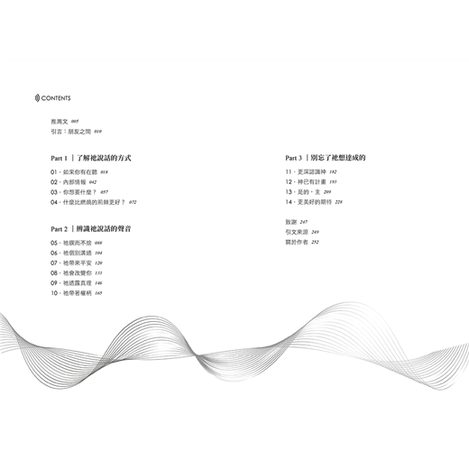 這就是本書要講的核心內容,我的目標是希望能陪你一起尋求聽見神的聲音,就像曾經(和持續)陪伴我一路走來的人那樣。我想跟你分享我所學到的,以及我們每一個人都能在哪些方面更加成長。
