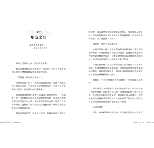 此刻我就是這樣的感覺,透過這本書與你相聚──像朋友一樣。也許幾年前你曾參與這本書的信息,就是當我初次提筆把它們寫下來之時;又或者你曾參加為期六週的「分辨神的聲音」查經班,如今我們又有機會聚首,聊聊自從上次道別之後的學習心得。