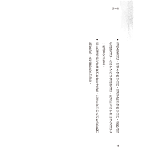 ★我們每個人所做的一切,都是基於與自己、與他人、與神以及與生命本身所達成的約定。在這些約定中,有些約定卻是來自恐懼之地,會耗盡一個人的情感能量,降低一個人的自我價值,進而造成不必要的痛苦。