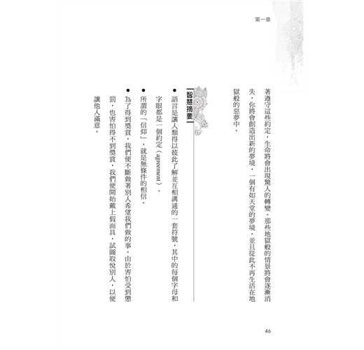 ★將複雜的人類議題,直指核心化約為覺醒的直觀,心靈大師魯伊茲提出了四項簡單易行的約定,只要我們能時時記得並實踐,就算偶爾失敗,但能堅持步步前行,心靈將得到不同於以往的滿足、幸福與自由。