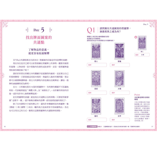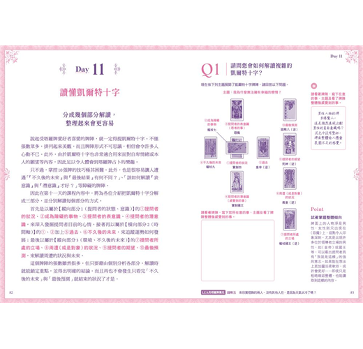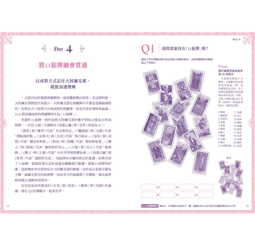 流暢運用多張牌的牌陣占卜/提昇針對各種問題的應用能力/明白該特別注意的塔羅牌為何