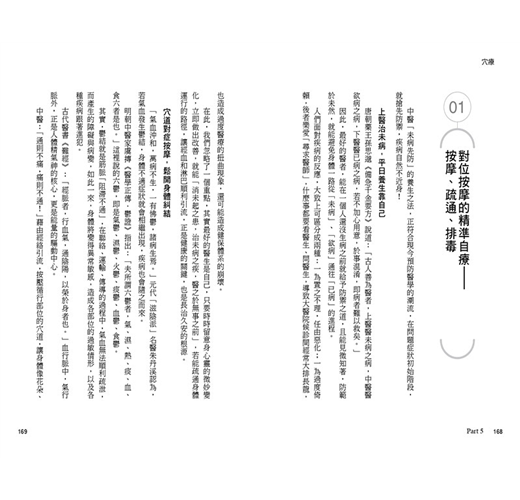 《黃帝內經》:「經脈為裏,支而橫者為絡,絡之別者為孫。」中醫經絡穴道養生術,採由按壓、推拿、刮痧、針灸等方式,疏通身體運行的路徑,讓經血和淋巴順利引流,正是健康的關鍵,也是長治久安的根源。