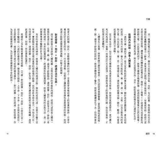 西方解剖學已有詳細人體地圖,呈現出有形的骨骼肌肉神經,經絡穴道則是人體另一條無形高速公路,在痠、麻、脹、痛等不舒服階段,運用按摩、拍打、刮痧等方式,排除「骨骼肌肉神經」有形的阻塞因素,疏通無形的阻塞因素,則是人體常用的自救方法,進一步則需靠專業中醫師的針灸治療。