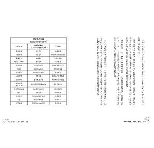 ・運用「個性認知」列表,從96個特點中圈選適合語詞,認識真實自我,不須透過他人確認自身的價值與存在感。