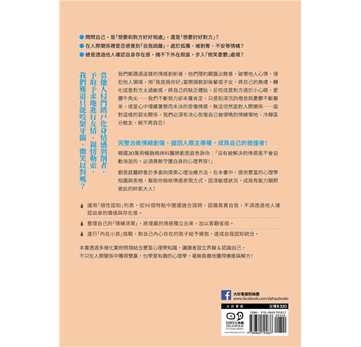 面對像是情緒吸血鬼、用「我是為你好」當開頭教訓後輩或子女等情感剝削者,將自己的無禮,轉化成是對方太過敏感;將自己的缺乏體貼,反咬成是對方過於小心眼。我們不斷努力卻未獲肯定,只感到深沉的倦怠與憂鬱不斷襲來;或是心中埋藏著懸而未決的受傷情感,無法坦然面對人際關係⋯⋯韓國30萬冊暢銷精神科醫師劉恩庭告訴你:「沒有被解決的情感是不會自動消逝的,必須勇敢守護自身的心理界限!」