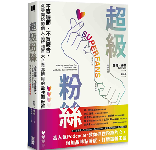 不論你是企業主、藝術家、音樂人、油土伯、部落客、播客,還是任何一種內容的創作者,只要你有企圖心要建立品牌與追隨者,那超級粉絲就是你想觸發成長的電光,也是你的業務想蒸蒸日上的命脈。你的超粉有能支撐你達成目標的超能力,所以才被冠上超級二字。一朝建立起超粉部落,你就為自家品牌確立了可長可久的成功,由此將來不論經營環境或科技面貌如何變動,強大的品牌都能讓你高枕無憂。