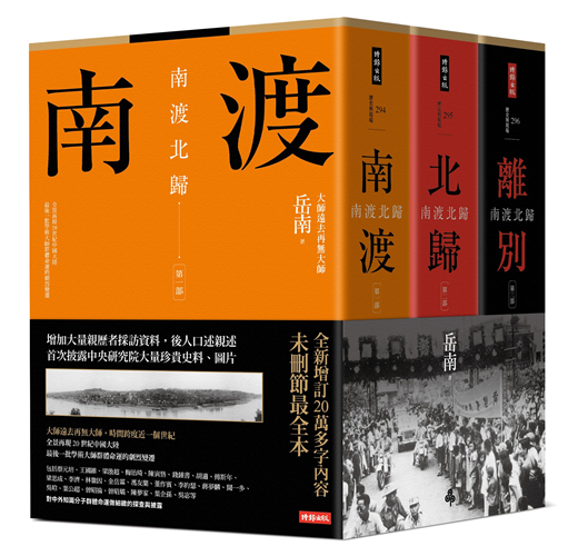 南渡北歸,分為《南渡》、《北歸》、《離別》三部,岳南講述的是上個世紀大批知識分子冒著抗戰的炮火由中原遷往西南之地,爾後再回歸中原的故事,再現國難當頭大師的風骨典範。整部作品的時間跨度近一個世紀,所涉人物囊括了二十世紀人文科學領域的大部分大師級人物,如蔡元培、王國維、梁啟超、梅貽琦、陳寅恪、錢鍾書等。本書三部曲對這些知識分子群體命運做了細緻的探查與披露,對各種因緣際會和埋藏於歷史深處的人事糾葛、愛恨情仇進行了有理有據的釋解,讀來令人心胸豁然開朗的同時,又不勝唏噓,扼腕浩歎。