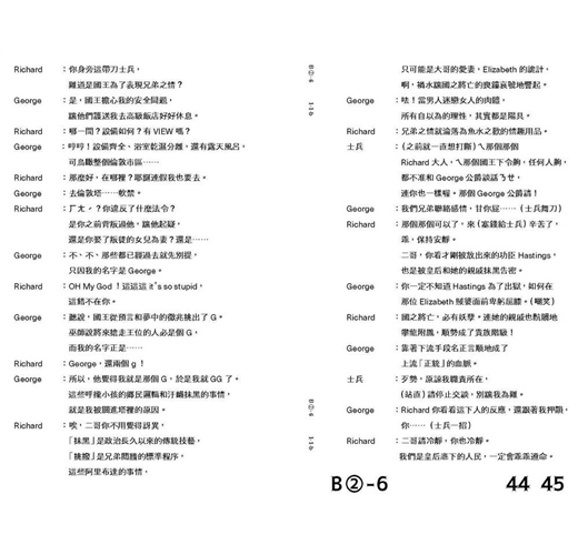 本書共分三輯,輯一「進廚房前的準備工作」,劇場大廚王嘉明自剖料理莎劇的獨門功夫;並邀來老饕側寫大廚的日常與料理的關係。輯二、輯三分別收錄《泰特斯》、《理查三世》二本以莎劇為食材的食譜書,帶讀者實際走入王嘉明的廚房,從食材備料、刀工作法、烹調技巧到擺盤上菜,深入了解一道劇場美食的料理過程。