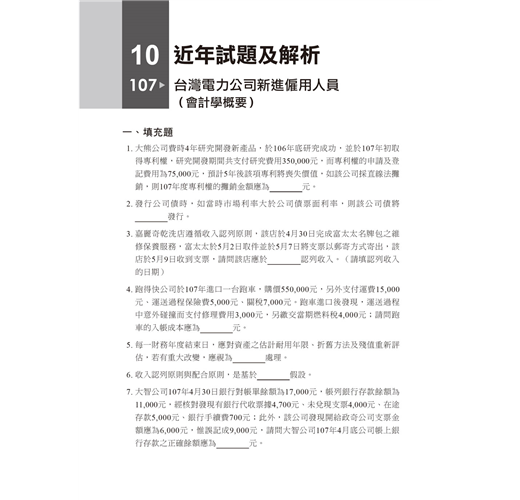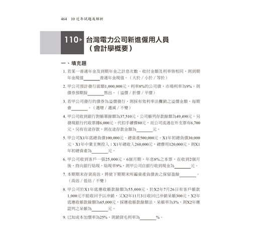 書末收錄最新國民營考試試題及解析,如110年台電及關務四等之會計學概要,保證時效最新、解析最精、收錄最全,歷年試題的統整,利於掌握考試最新脈動與命題方向。即時試題一網打盡,毫不保留,經過名師詳解,類似的題目再出個一百次,也不害怕!輕鬆學習、快速理解,掌握命題趨勢,必定能在考場所向披靡!