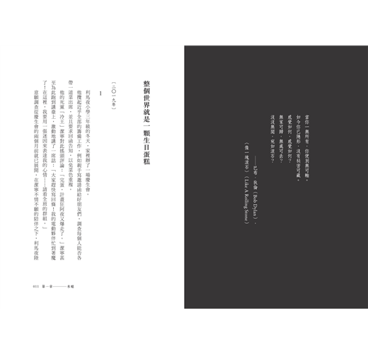 現在玻璃櫃檯上只剩利馬夜一個人。他發現自己也弄不清這句話的意思,究竟是他未必會懂,還是未必會長大。或者是……兩者都未必?