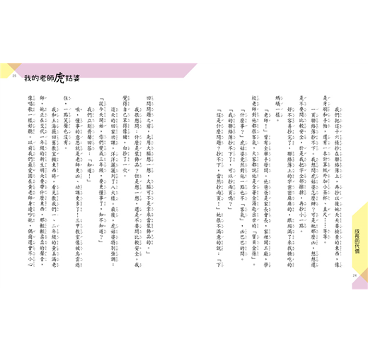 這回虎姑婆要重新改版校稿時,重讀當年的書稿,有個有趣的對照:我剛從小學退休,當年初入校園的年輕老師,不知不覺中,也悄悄變成書中陳春珠老師的年紀,雖然我不是虎姑婆,但稱為「虎叔公」好像也可以。